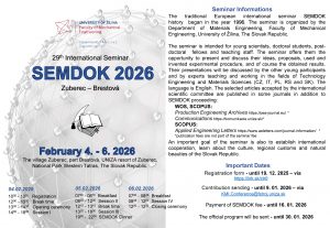 Contribution sending – until 9. 01. 2026 – via KMI.Conference@fstroj.uniza.sk
